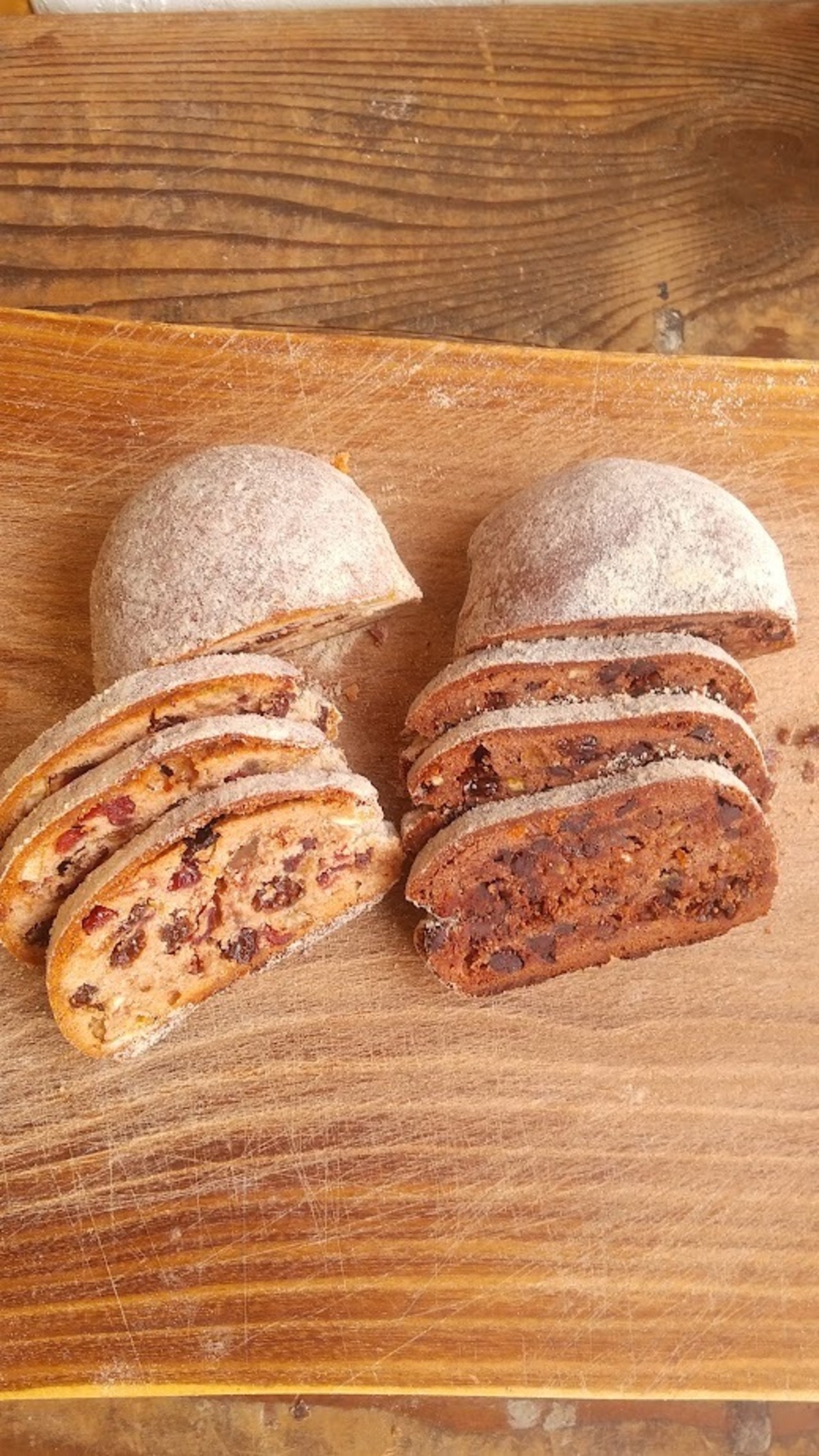 表面のドライフルーツが焦げないよう、薄皮でくるんで焼成しているのも当店シュトーレンの特徴です。